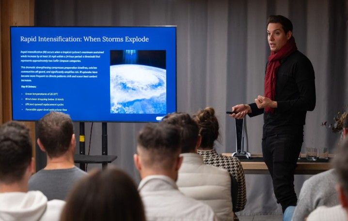 El meteoròleg estatunidenc Ariel Rodríguez, de Telemundo Florida, ha aprofitat la seva primera visita al Principat per compartir la seva exposició en què ha aprofundit en la formació i organització dels huracans, així com en els mecanismes que expliquen la seva sobtada intensificació, un fenomen cada vegada més freqüent en un context de canvi climàtic. A més, la jornada ha comptat amb una xerrada telemàtica de Carlo Buontempo, director del Servei de Canvi Climàtic de Copernicus (C3S) de la Unió Europea, que ha presentat Global Climate Highlights, aportant una visió sintètica i actualitzada de l’estat del clima a escala planetària.