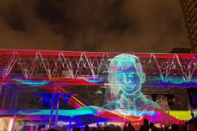 El Mercat Municipal de la Florida ha estat l’escenari d’un espectacular espectacle visual que ha fusionat dansa contemporània i videomapatge. Aquesta activitat ha permès als assistents viure una experiència immersiva, on l’art i la tecnologia s’han combinat per oferir noves perspectives. La dansa ha interaccionat amb la il·luminació i el so, convertint l’entorn urbà en un escenari vibrant i col·laboratiu.