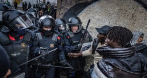Els Mossos executen el desallotjament de l’antic institut B9 de Badalona...