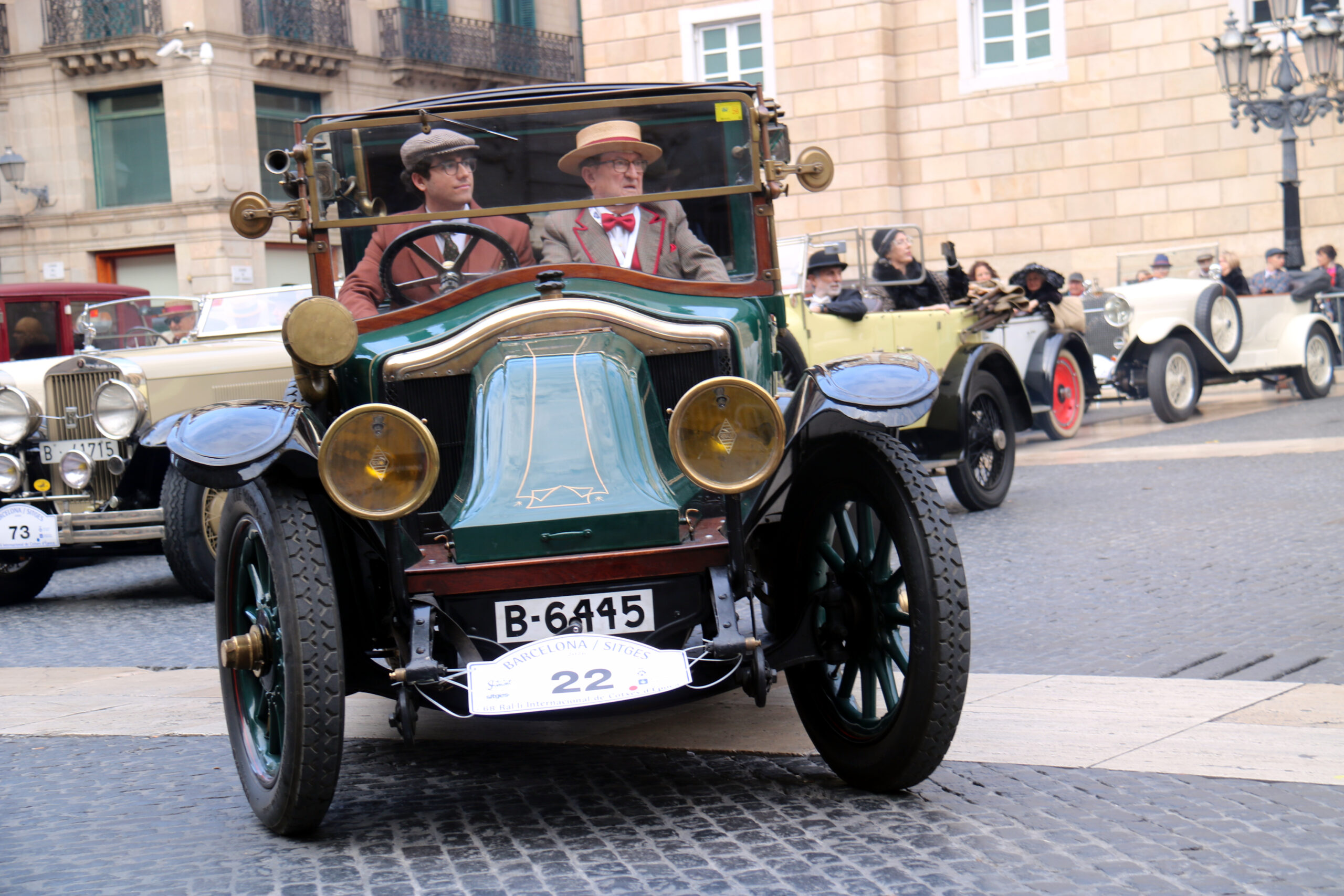 ACN Barcelona – La plaça Sant Jaume de Barcelona s’ha convertit aquest diumenge en un escenari dels inicis del segle XX amb la sortida del 68è Ral·li Internacional de Cotxes d’Època Barcelona-Sitges. Una setantena de cotxes i motocicletes fabricats abans del 1928 han participat en aquesta cita històrica, que cada any transforma el centre de la capital catalana en una postal viva del passat. Fidels a la tradició, conductors i passatgers han lluït indumentària d’època per recrear l’ambient social i estètic dels anys en què van ser construïts els vehicles. El fum característic i el so metàl·lic dels motors centenaris han atret l’atenció de veïns i curiosos, que s’han aturat per fotografiar unes peces que habitualment no poden circular per la ciutat.