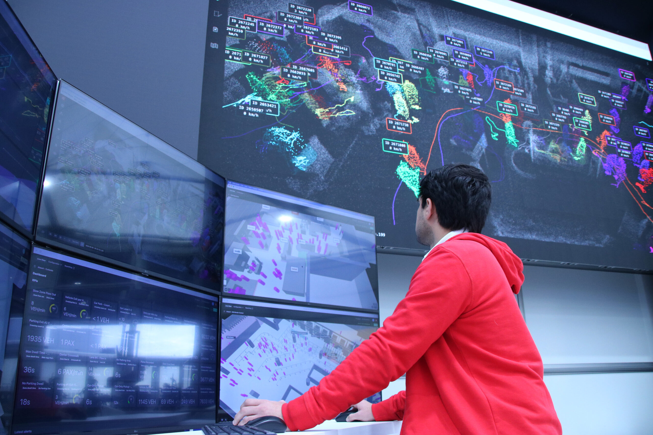 “No utilitzem càmeres, sinó un sensor amb làsers. El que veiem a la pantalla són petits punts que representen persones, i podem seguir cada persona individualment sense saber qui és”, explica.