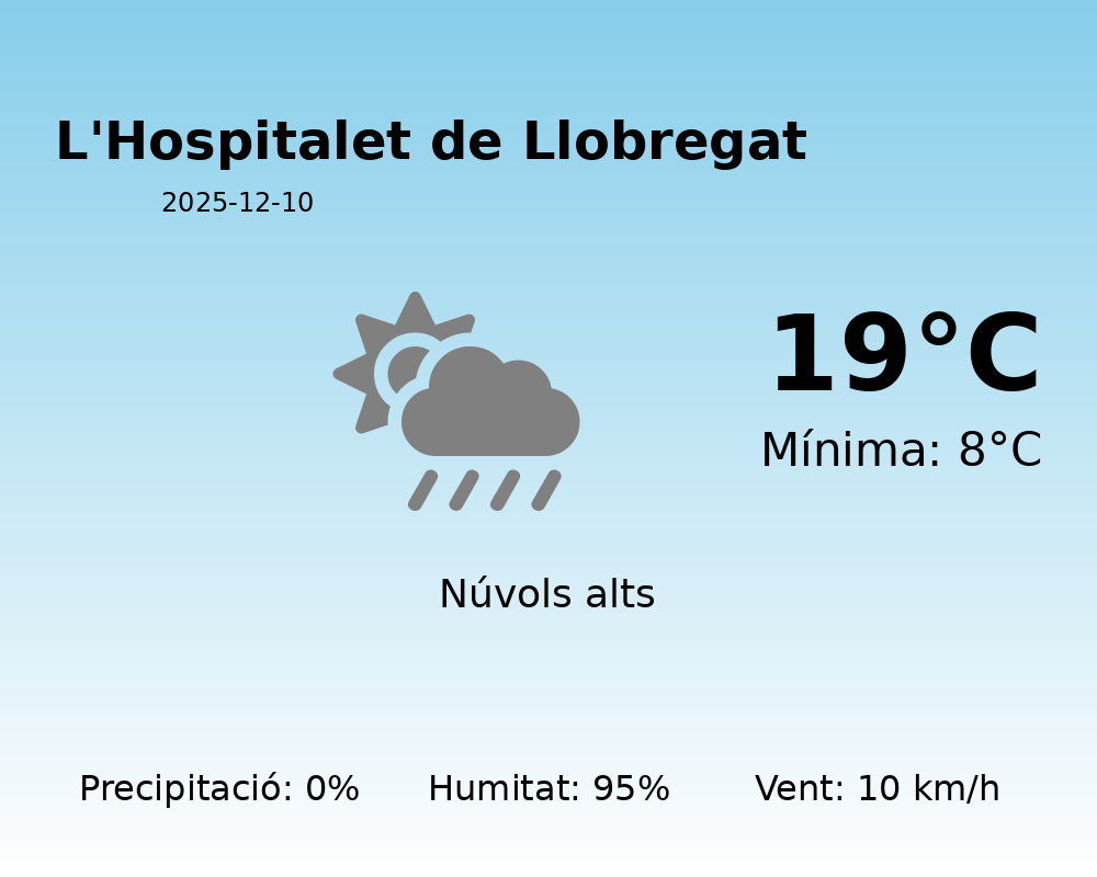 Benvolguts lectors, avui us portem la predicció meteorològica per a L’Hospitalet de Llobregat, amb dades que ens permeten entendre millor les condicions que viurem durant aquesta jornada.